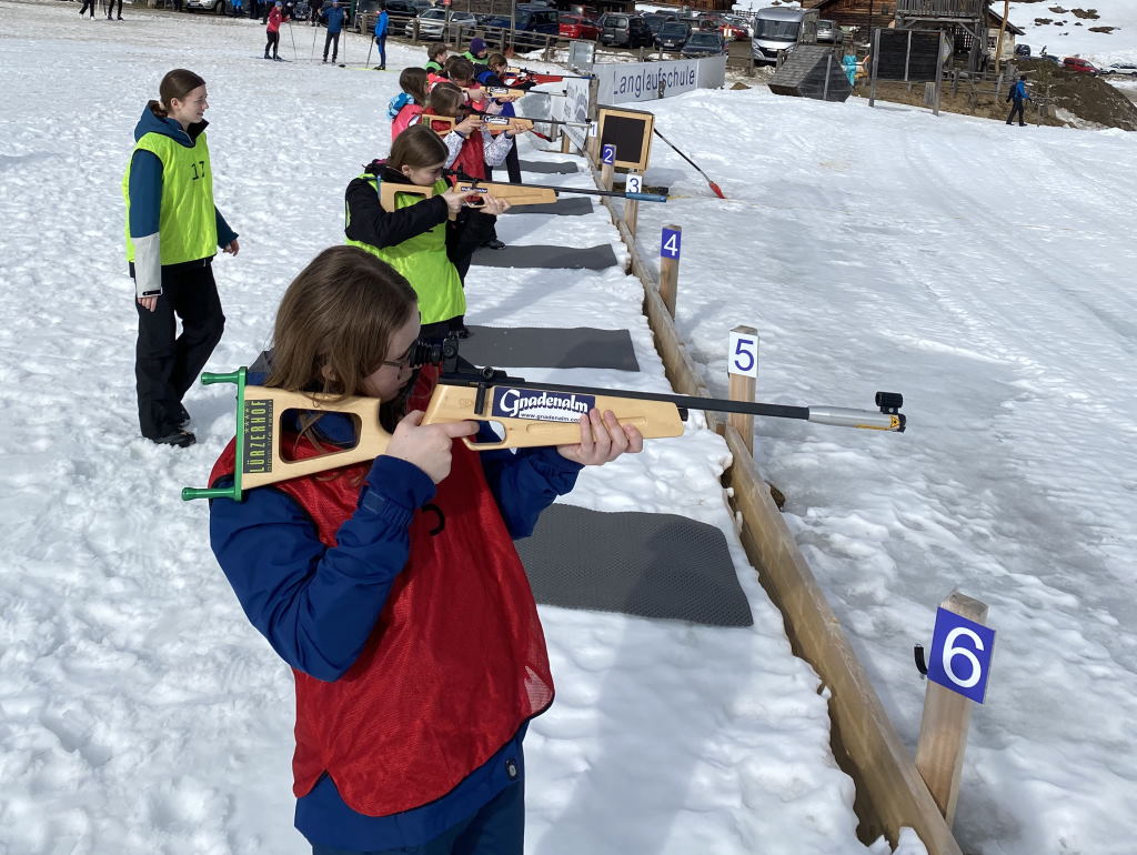 Spaß auf den Brettern gab es aber nicht nur für die Skifahrer und Snowboarder, sondern auch für die Alternativgruppe, die sich bewaffnet mit den Langlaufskiern auf die Loipe begab. Besonderheiten waren dabei die Abfahrt auf der „Mausefalle“, die für Erheiterung sorgte und der Biathlon am Donnerstag.