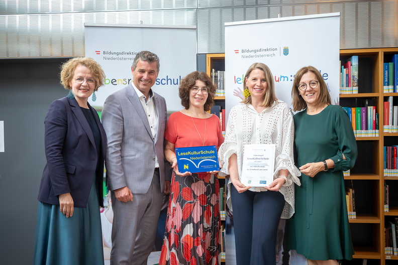 Durch das große Engagement des Lehrerkollegiums erfüllten wir wieder die Voraussetzungen für das Gütesiegel „LeseKulturSchule“. Bildungs-Landesrätin Christiane Teschl-Hofmeister übergab die Urkunden in der Landesbibliothek mit den Worten „Sinnerfassendes Lesen ist eine elementare Grundvoraussetzung für einen erfolgreichen Bildungs-, Berufs- und Lebensweg. Ich freue und bedanke mich, dass in zahlreichen Schulen die Leseleidenschaft der Schülerinnen und Schüler gefördert wird.“ Zu den Kriterien, die erfüllt werden müssen, zählen unter anderem die Bereiche Leseräume, schulinterne Lesekultur, die darauf abzielen soll, Leseinteresse und -motivation bei den Schülerinnen und Schülern zu wecken und die Förderung der Lesekompetenz.