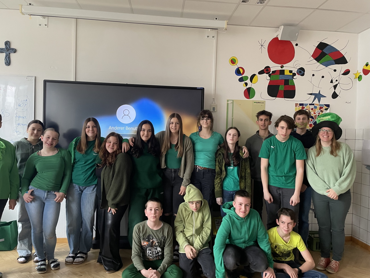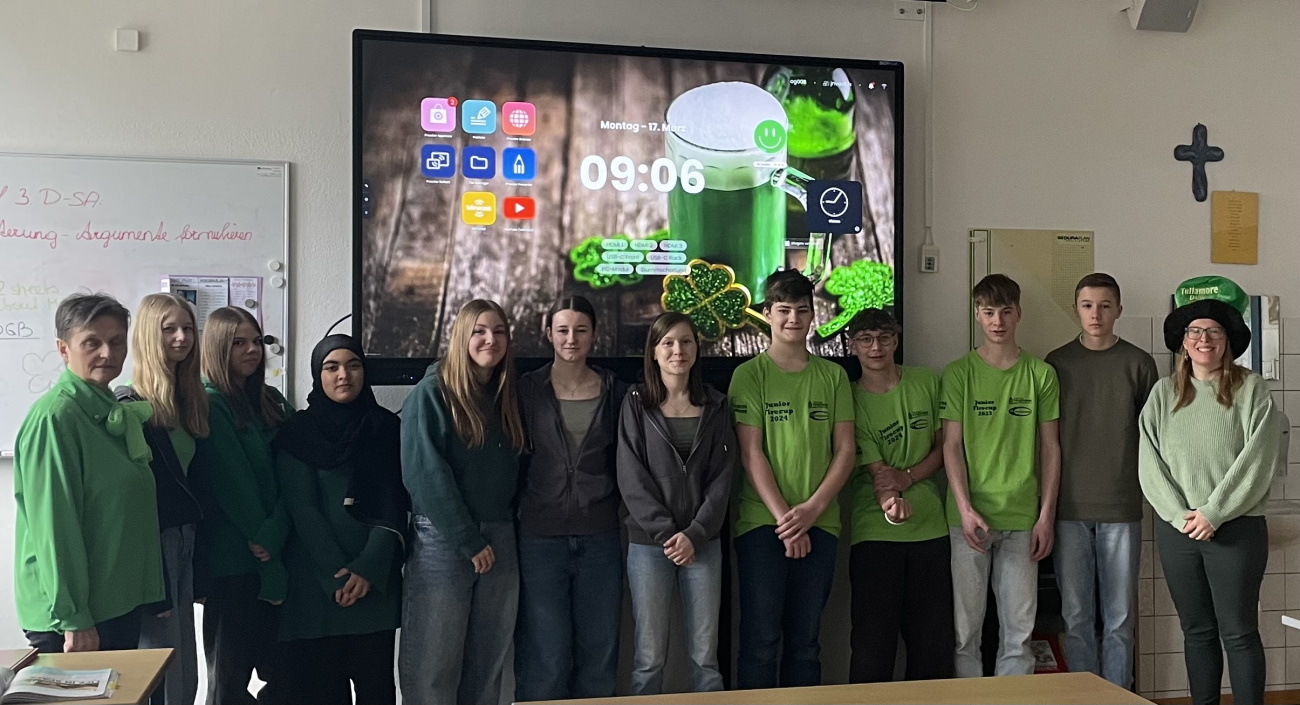 Am Montag den 17. März lief alles unter dem Motto grün, denn die 4. Klassen feierten im Englischunterricht den St. Patrick’s Day. Dabei brachten die Schülerinnen und Schüler selbstgebackene, grüne Muffins und Kekse mit. Außerdem wurden irische Tanzschritte einstudiert, Wissensspiele gespielt und irische Musik gehört.