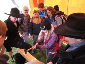 ein Bienenquiz; Wissensfragen beantworten und als Abschluss Zuordnungsfragen zum Thema Holzbau und als Geschicklichkeitsaufgabe Nägel einschlagen.