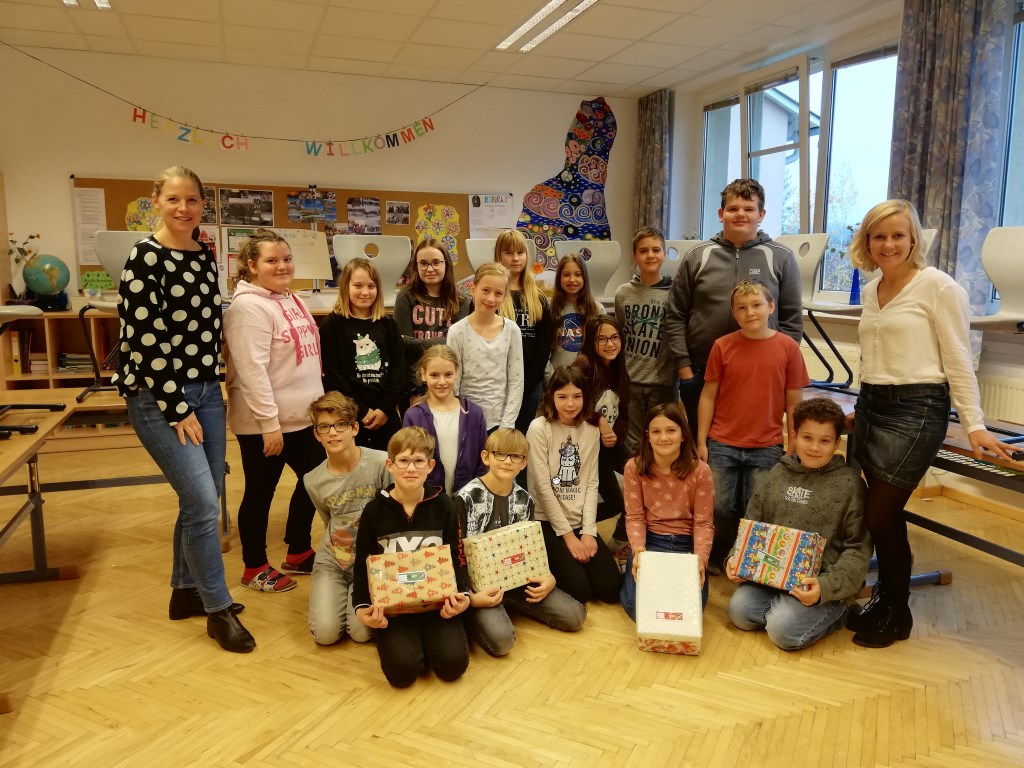 Die Klasse 2b engagierte sich für die Aktion „Weihnachten im Schuhkarton“. In vier Gruppen überlegten die Schülerinnen und Schüler, womit sie Kindern, denen oftmals das Nötigste fehlt, eine Freude bereiten können. Neben Hygieneartikel und Schulbedarf befüllten die Kinder ihre Kartons mit Spielsachen und Naschereien. Im Rahmen des Englischunterrichts schrieben die Schülerinnen und Schüler einen kurzen Brief an die beschenkten Kinder, auch wurde vom Klassenvorstand, Frau Prof. Cornelia Pfeffer, ein Klassenfoto beigelegt. Die ganze Klasse 2b war stolz auf ihre Schachteln und hofft, dass sich vier Kinder über ihre Weihnachtsüberraschung aus der NMS St. Leonhard/Forst freuen.