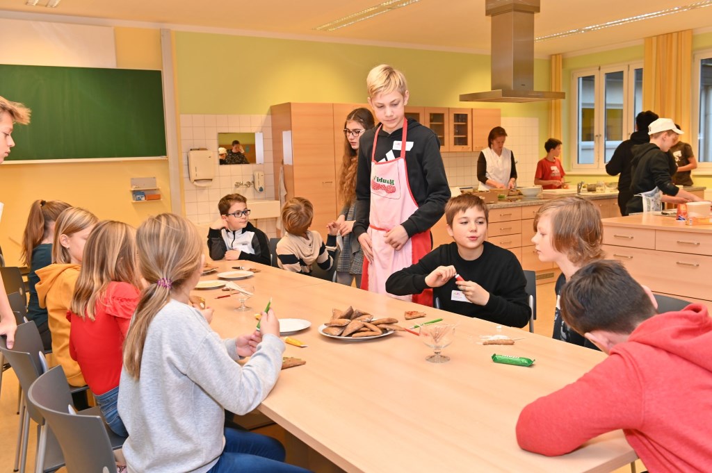 Eine Stärkung gab es für die jungen Gäste natürlich mit einer gesunden Jause, die von Schülerinnen und Schülern der achten Schulstufe hergerichtet wurde. Zu unserer Freude nutzten auch viele Eltern die Gelegenheit bei einem Rundgang einen Einblick in unseren Schulalltag zu bekommen. Sie konnten sich danach beim Eltern-Café des Elternvereines stärken.