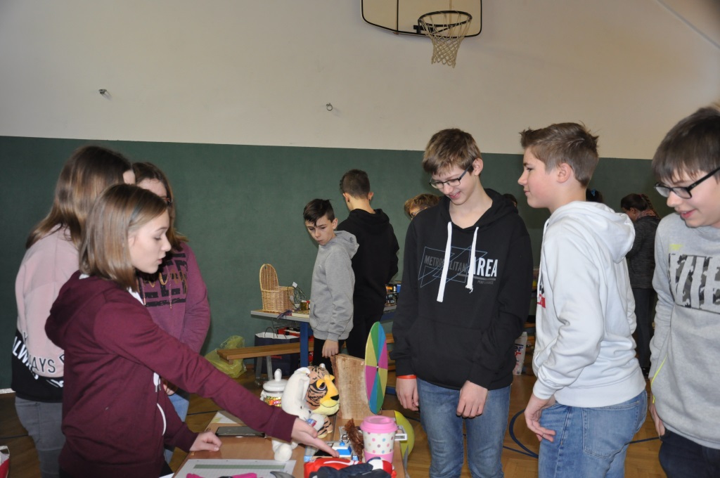 Jede Klasse hatte während des Projekttages Zeit, den Flohmarkt zu besuchen und zu durchstöbern. Abschließend präsentierten alle Klassen ihre Projektergebnisse im Rahmen einer Schulversammlung.
