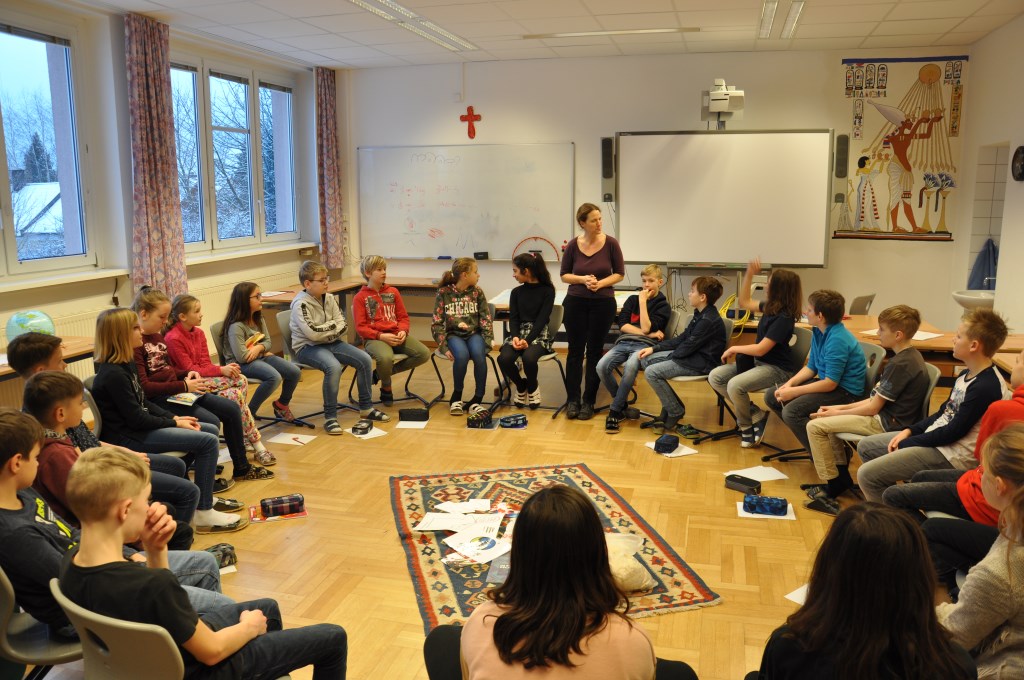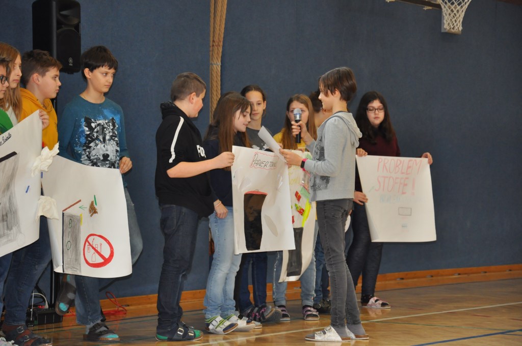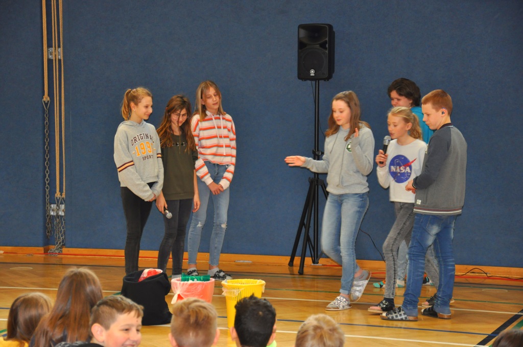 Die zweiten Klassen beschäftigten sich mit der fairen Produktion von Smartphones. Der Gemeindeverband für Umweltschutz stellte uns für den Workshop zwei Referenten kostenlos zur Seite. Mit anschaulichem und praktischem Material wurde die richtige Mülltrennung geübt.