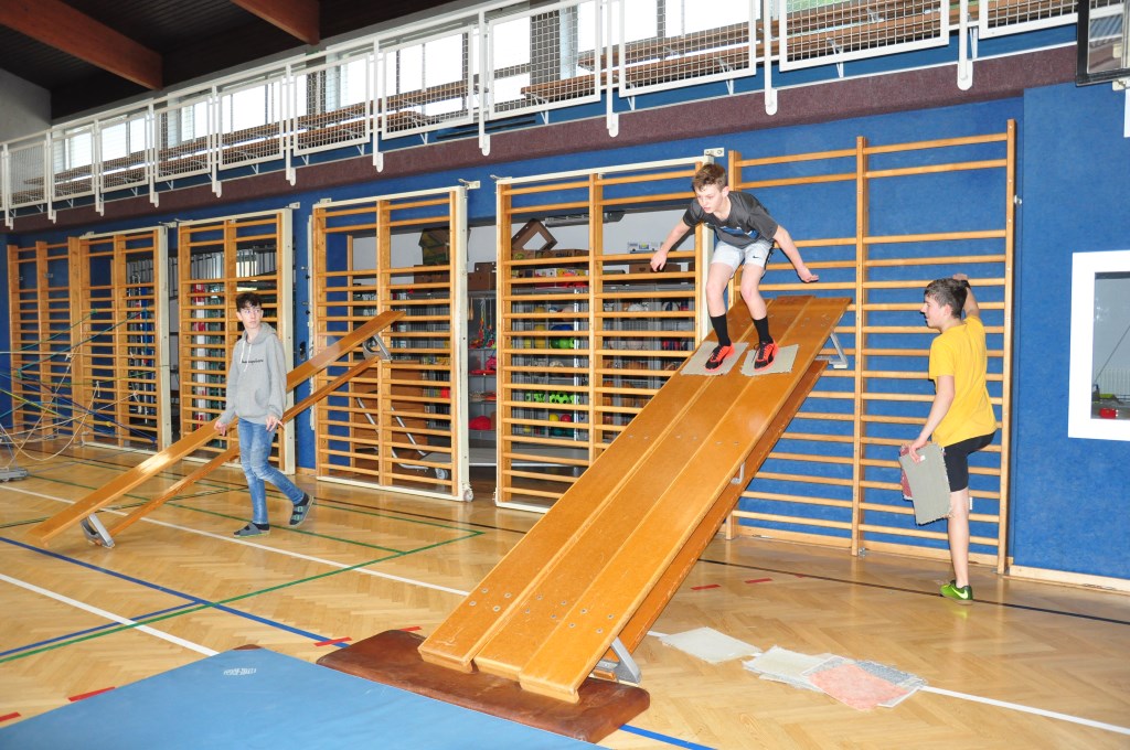 Die 4. Klassen blockten am 27. Februar 2020 den Sportunterricht und hatten somit nicht nur zwei Unterrichtseinheiten, sondern vier. Deshalb konnten viele verschiedene Stationen aufgebaut und geübt werden. Im Anschluss wurden die Übungen verbunden und sie konnten den gesamten Parcours (angelehnt an Ninja Warrior) durchlaufen. Die Begeisterung und Motivation der Schülerinnen und Schüler war deutlich zu sehen, sie hatten sehr viel Spaß bei den einzelnen Übungen.