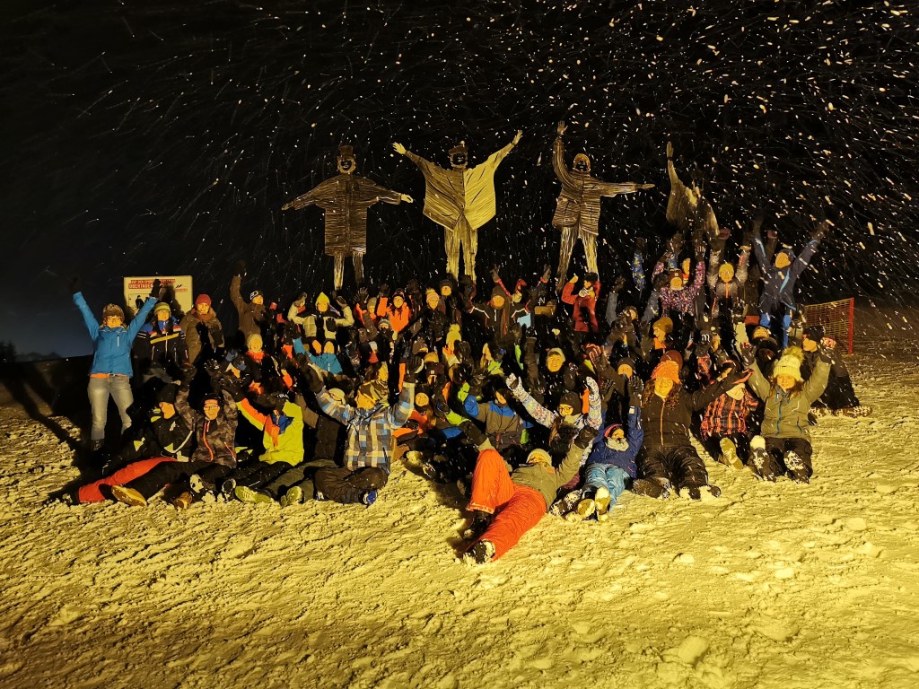Am Sonntag, den 1. März, fuhren 64 Schülerinnen und Schüler in Begleitung ihrer Lehrpersonen nach Obertauern zur Wintersportwoche. Nach dem Beziehen der Zimmer folgte am Abend eine Nachwanderung zur Statue der Beatles.