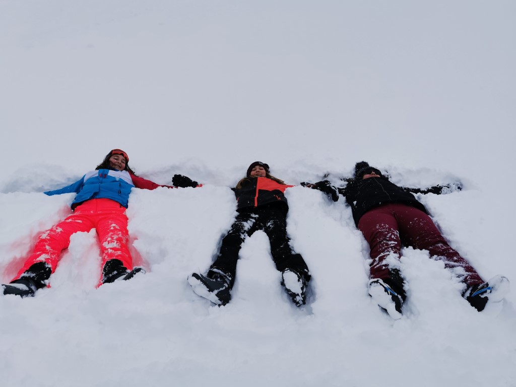 Doch nicht nur die Skifahrerinnen und Skifahrer, sondern auch die Langläuferinnen und Langläufer kämpften sich tapfer durch den Tag. Nach einer etwas längeren Fahrt haben die Sportlerinnen und Sportler der Alternativgruppe einen tollen Platz für ein paar „Schneeengerl“ gefunden.