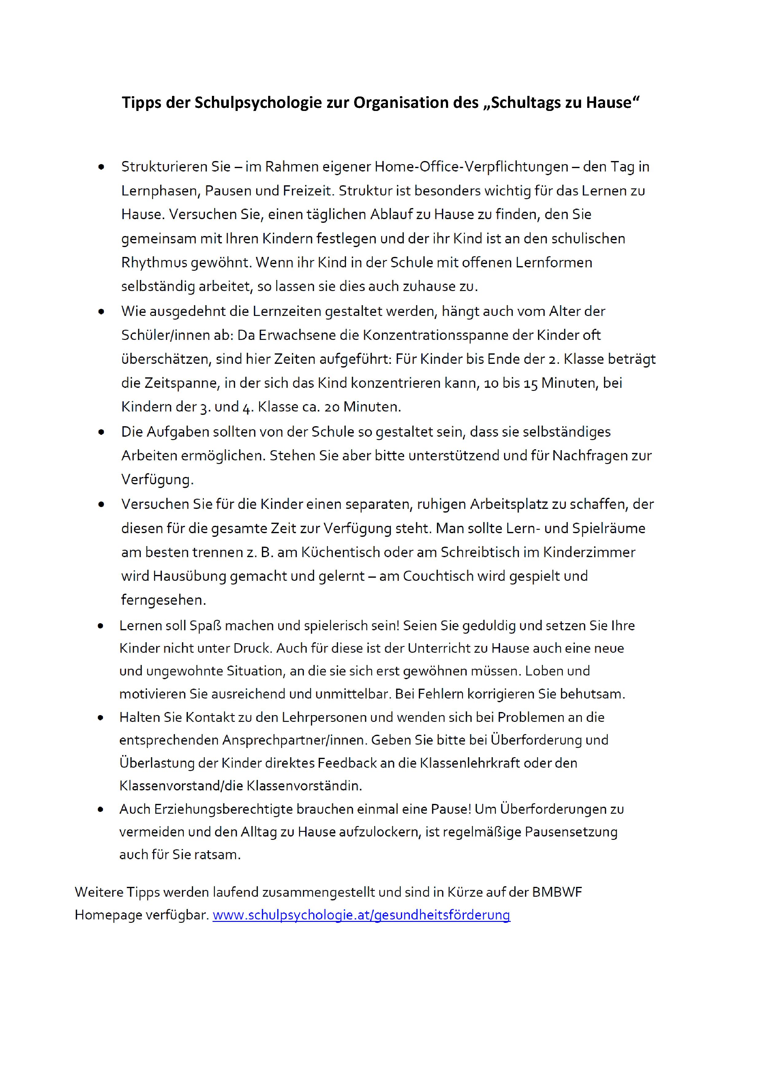 Gesammelte Tipps der Schulpsychologie NÖ Veröffentlicht am17 März, 202011 April, 2020Autorscsu Zwei PDFs mit genaueren Informationen finden sie unten zum Downloaden. (Bild anklicken um auf den Artikel zu kommen) Zusammengefasste Tipps der SchulpsychologieHerunterladen Tipps der SchulpsychologieHerunterladen