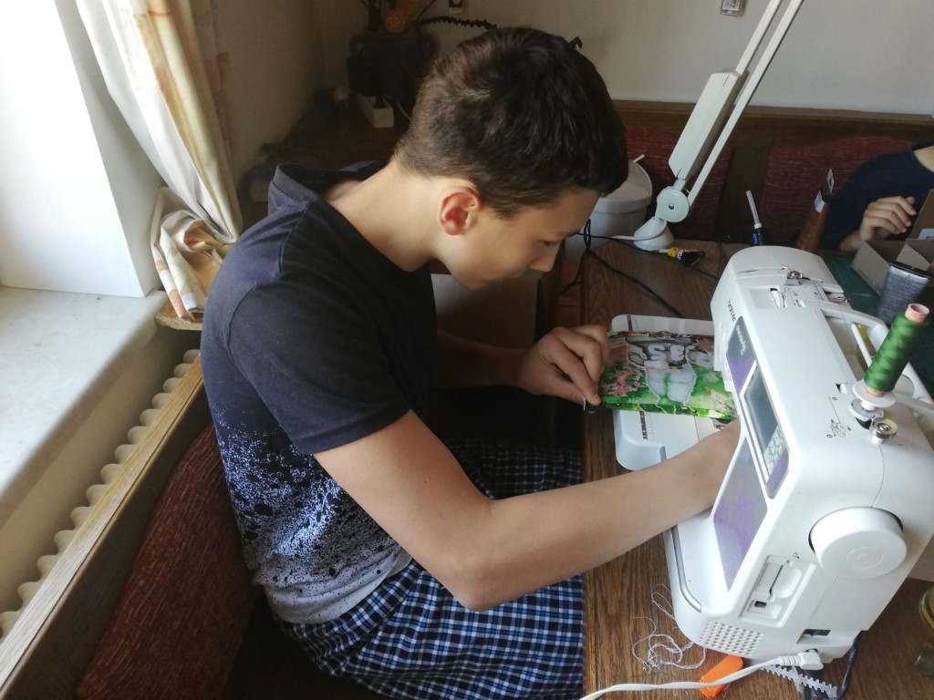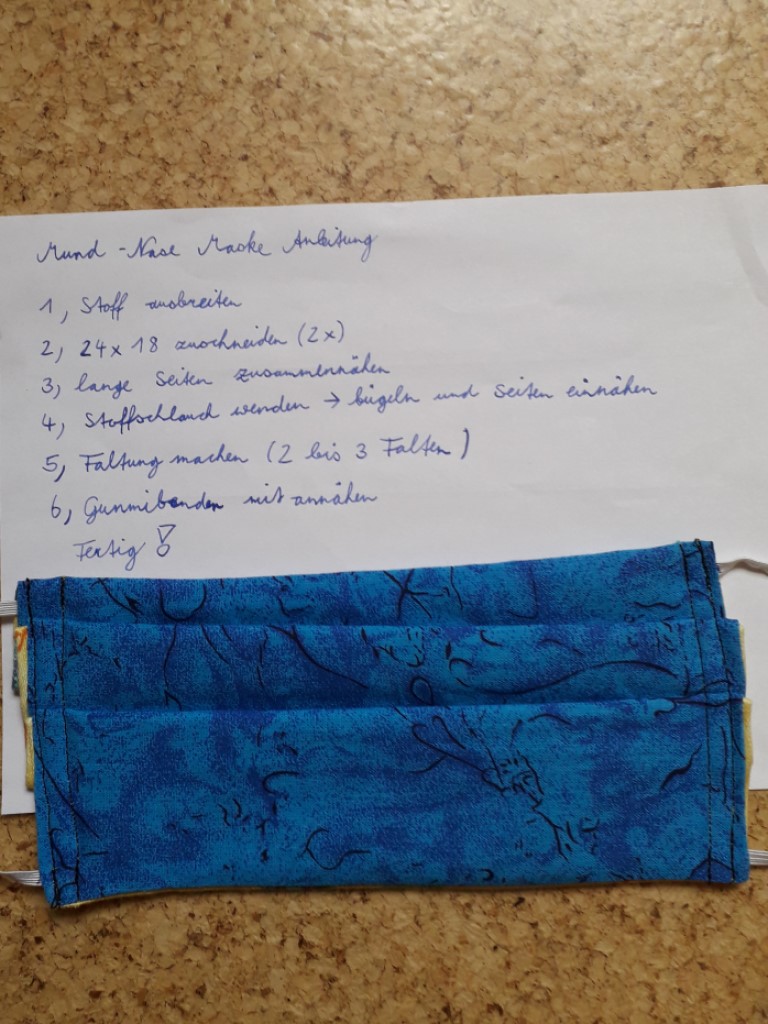 Dass auch die Nebenfächer nicht zu kurz kommen, sieht man am Arbeitswillen unserer Jugendlichen. So haben Sie für das Fach Werkerziehung nun selbstständig Schutzmasken genäht, die im Moment zu unserem Alltag gehören.