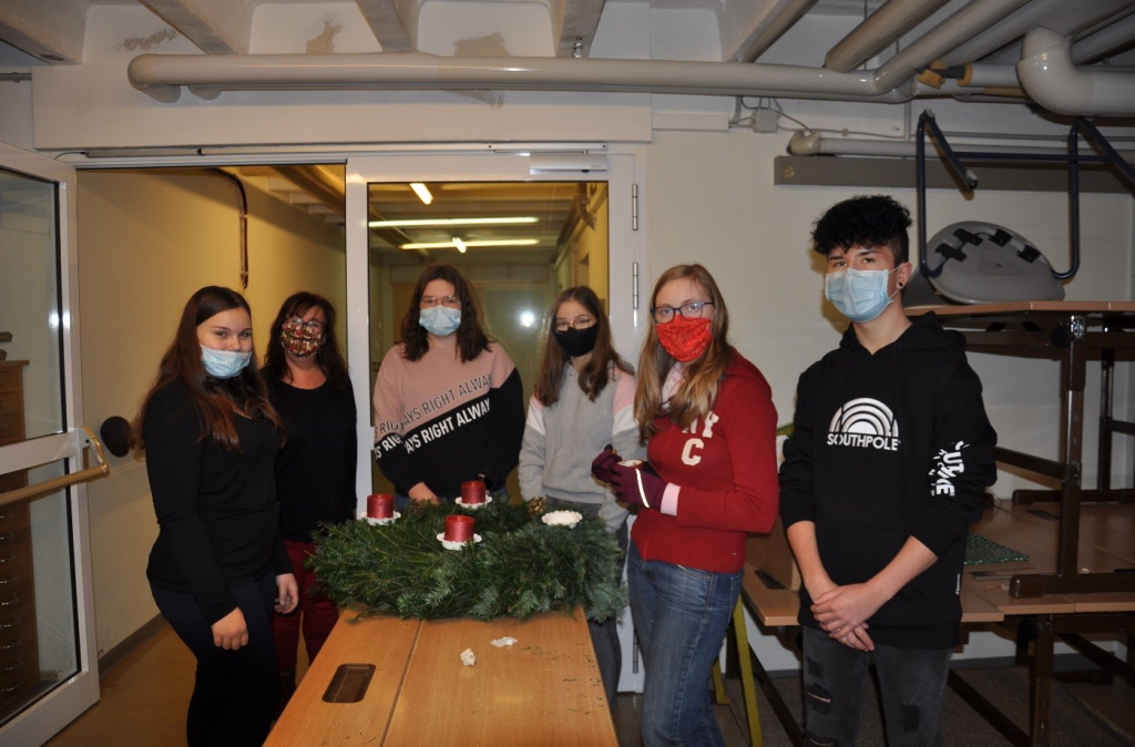 Schule als Ort des „Lebens und Lernens“ kann gerade in der Vorweihnachtszeit einen wichtigen Beitrag in der Vermittlung von Traditionen leisten. Darum haben sich unsere Schüler/innen angeboten, unseren Schuladventkranz – unter Anleitung von BEd Natascha Hackl – im Religionsunterricht selber zu binden und zu gestalten. Der geschmückte Kranz mit den vier Kerzen erinnert schon beim Betreten der Schule an die stillste Zeit im Jahr. Als Vorbereitung auf das Weihnachtsfest wird auch die Teilnahme an sozialen Aktivitäten angeboten.