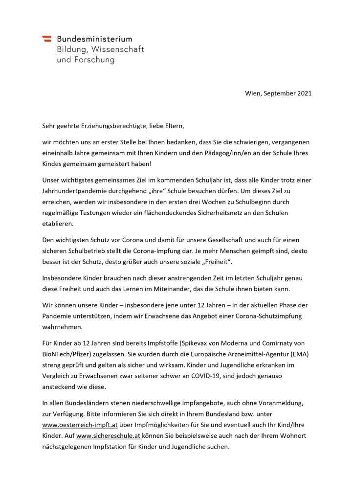 Informationsbrief des Bundesministeriums zur Corona-Impfung Veröffentlicht am9 September, 20219 September, 2021Autorscsu Bitte klicken Sie auf das Beitragsbild, oder die Überschrift, um zum Artikel zu gelangen.