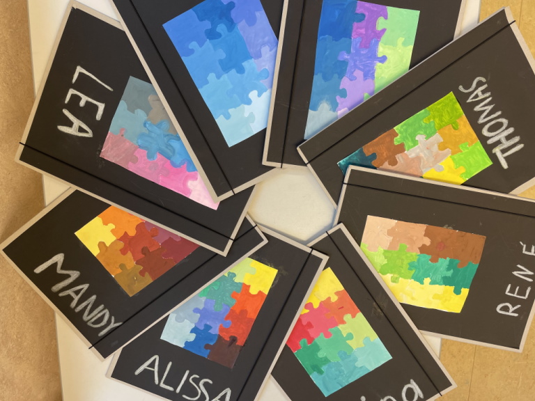 In den 1. Klassen gestalteten die Schülerinnen und Schüler ihre Zeichenmappen in den buntesten Farben. Diese Mappen dienen als Aufbewahrung für ihre Arbeiten.