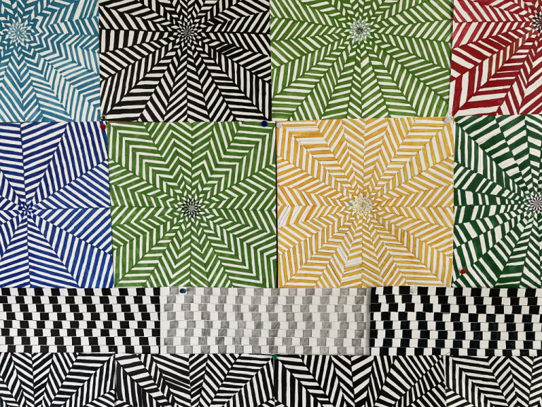 Die Schülerinnen und Schüler der 3. Klassen kreierten optische Täuschungen. Beim längeren Betrachten kann einem schon mal schwindlig werden.