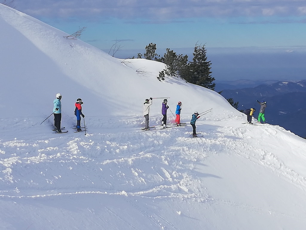 In der ersten Märzwoche starteten über 80 Schüler*innen bei herrlichem Wetter und optimalen Schneeverhältnissen mit Bussen der Firma Mitterbauer auf das Hochkar bzw. nach Lackenhof. Strahlender Sonnenschein und optimale Schneebedingungen sorgten für Spaß im Schnee beim Skifahren, Snowboarden, Langlaufen oder Schneeschuhwandern. Eine Stärkung im Almgasthof motivierte die Wintersportler*innen für den Nachmittag. Die Kinder stellten ihr sportliches Talent unter Beweis, sodass es zu keinen gröberen Unfällen oder Verletzungen kam. Am späten Nachmittag kehrten alle wieder wohlbehalten, vergnügt, aber müde nach Hause zurück. Nach den vielen Entbehrungen der letzten schwierigen Monate erlebten die Mädchen und Burschen mit ihren Lehrer*innen drei unbeschwerte Tage in der Natur!