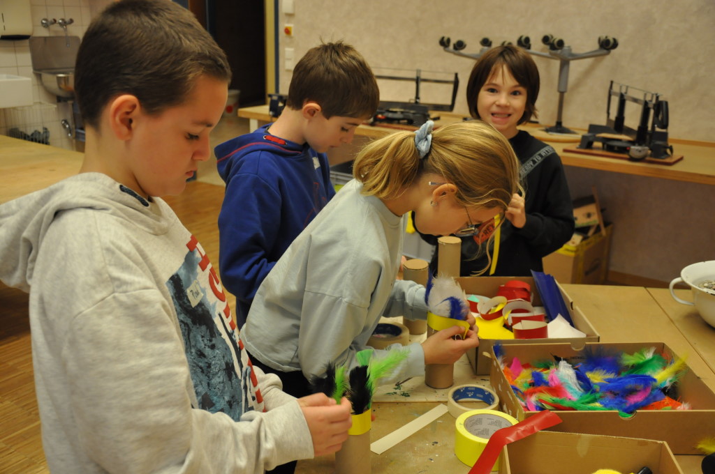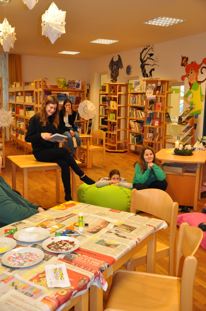Die 4. Klassen der Volksschulen Ruprechtshofen und Zelking besuchten Anfang Dezember die NMS. Sie wurden mit großem Engagement bei verschiedenen Stationen von Schüler:innen der 8. Schulstufe betreut. Eine Klanggeschichte lud im Musikraum zum Mitmachen ein, im Werkraum bastelten die Kinder bunte „Regenmacher“ und in der Bibliothek lauschten sie gespannt einer Weihnachtsgeschichte.