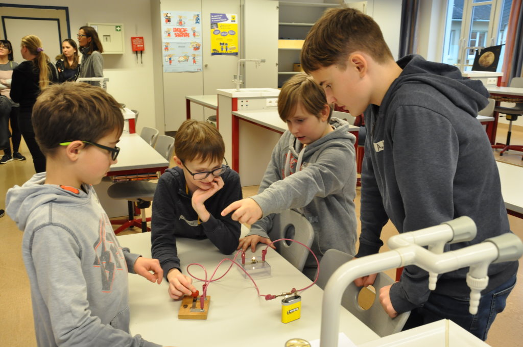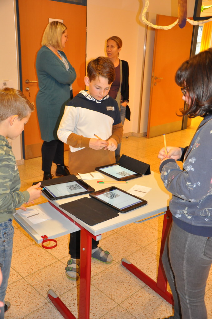 Nach einer gesunden Jause folgte im Informatikraum eine QR-Code-Rallye über Märchen mit Tablets, im Physiksaal erfuhren sie Wissenswertes über Strom und Magnetismus. Die Airtrackbahn im Turnsaal sorgte außerdem für reichlich Bewegung.