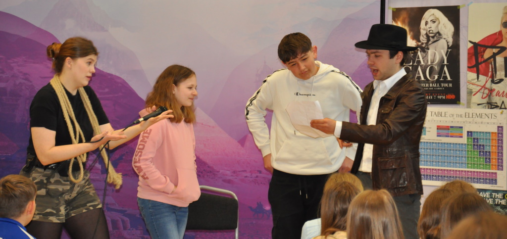 Die Schüler*innen der 6., 7. und 8. Schulstufe der Mittelschule St. Leonhard am Forst erfreuten sich wieder einmal einer einstündigen Aufführung des „Vienna English Theater‘s“. Die abwechslungsreiche Komödie „Virtual Heroes“ wurde am 14. April von Schauspieler*innen aus London in der Schule vorgespielt. Aus einer Mischung von Realität und Cyberspace wurden ernste Thematiken, wie z.B. Mobbing, mit fantasievollen, wie auch komischen Elementen, spielerisch verflochten.
