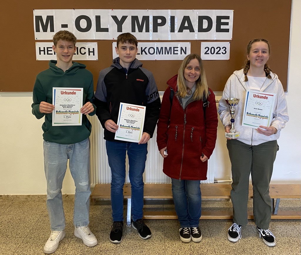 Zehn Mittelschulen nahmen mit je drei Schüler*innen an der Bezirksausscheidung der Mathematik-Olympiade 2023 in der Mittelschule Mank teil. Obwohl die Aufgaben sehr knifflig waren und manchmal auch das berühmte „Denken ums Eck“ erforderten, fiel das Rennen um den Sieg in der Bezirksausscheidung sehr knapp aus. Alle unsere Teilnehmer*innen – Anton Hackner (4a), Anna Wurzer und Sebastian Ebenführer (4b) – belegten Plätze in den „Top Ten“ und konnten damit zur großen Freude von Begleitlehrerin Adele Callenberg den ersten Platz im Teambewerb für sich entscheiden!