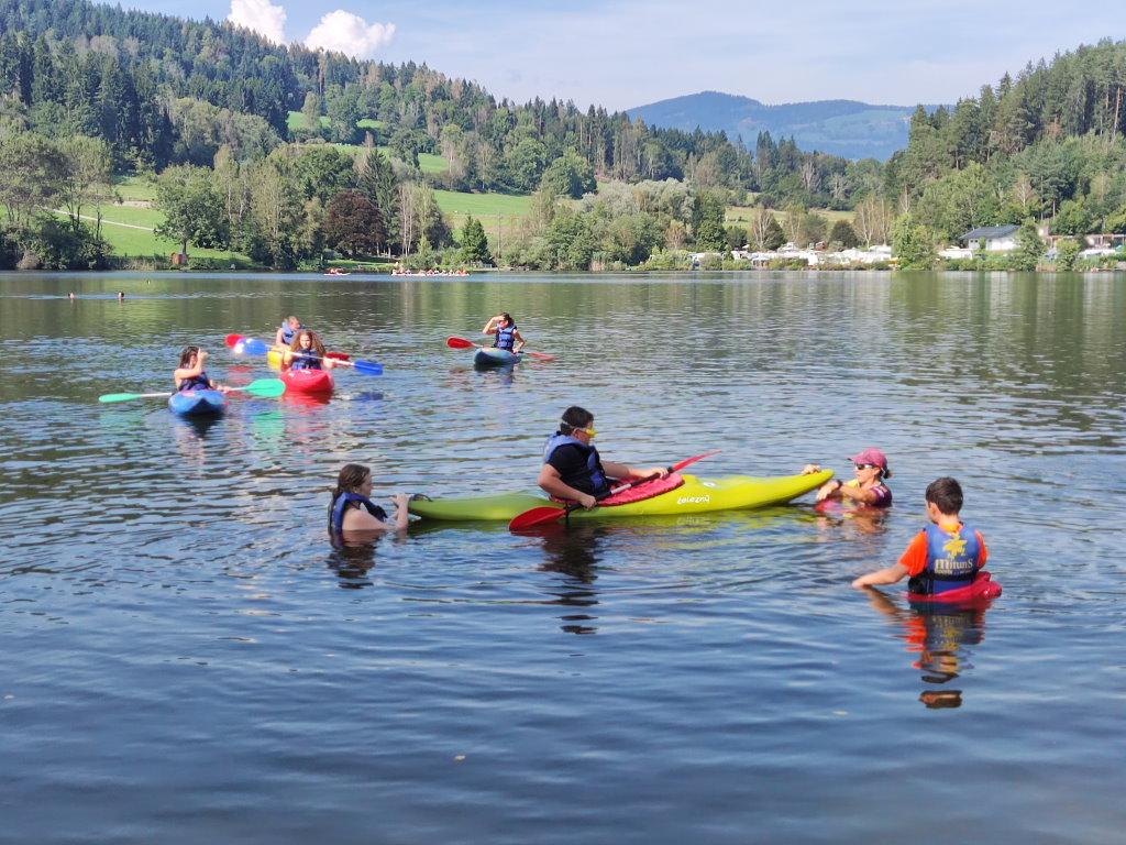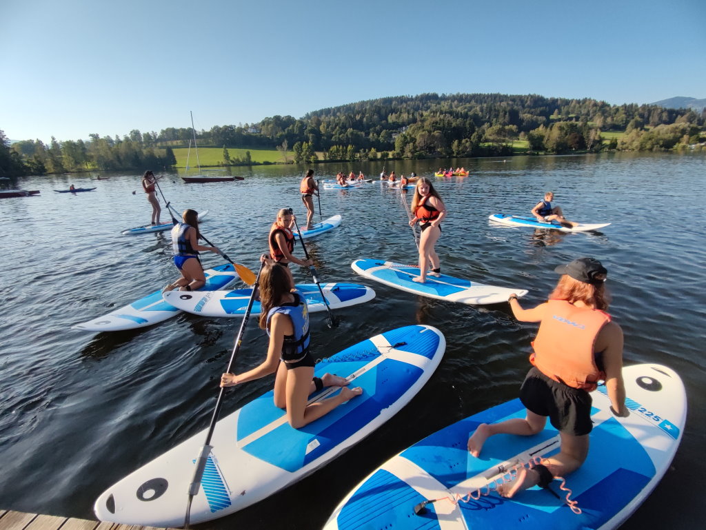 Die Schüler/innen der Klassen 4a, 4b und 4c waren von 11. bis 15. September mit ihren Lehrer/innen Fr. Gröger, Fr. Gruber, Fr. Karlinger, Hr. Karner und Fr. Schweinzer in Kärnten. Nach einer fünfstündigen Fahrt kamen alle wohlbehalten am Maltschacher See an, die Zimmer wurden bezogen und nach dem Mittagessen fingen schon die ersten Sportarten an. Es gab Mountainbiken, Tennis, Kajak, Reiten, Adventure Fun Games, Stand Up Paddling, Surfen, Beach-Volleyball, Tauchen und Segeln zur Auswahl.