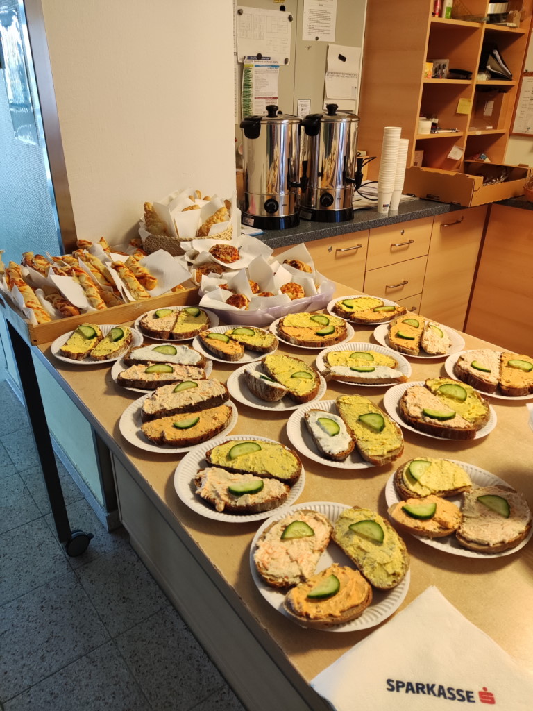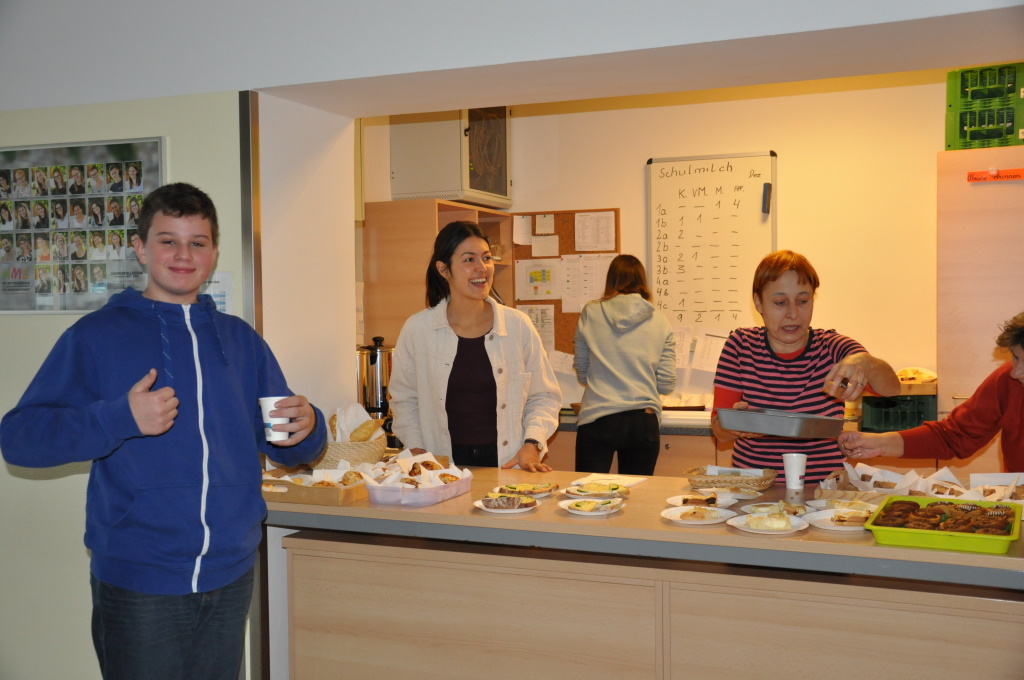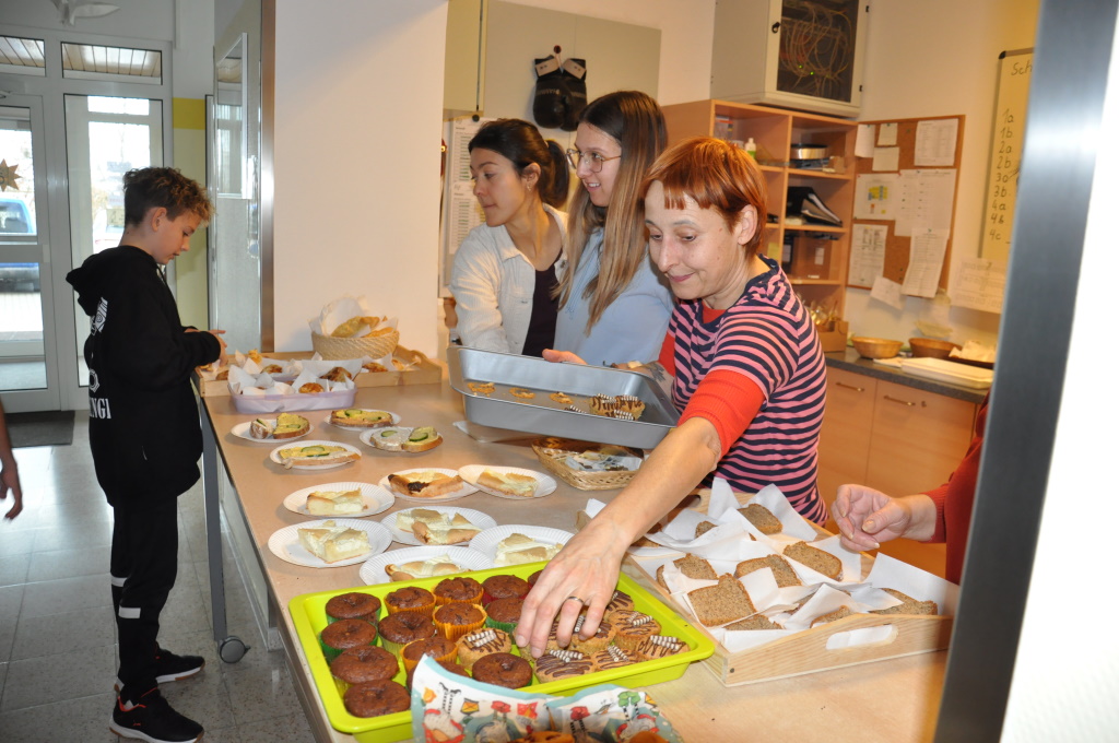In der zweiten Adventwoche luden die LehrerInnen in der großen Pause zu einem Adventbuffet für soziale Zwecke ein. Angeboten wurden Aufstrichbrote, Muffins, Cookies, Pizzaschnecken, selbstgebackene Weckerl und Kinderpunsch. Der Andrang war groß und so konnten rund 270 Euro eingenommen werden. Wir bedanken uns bei den KollegInnen für die großartige Unterstützung!